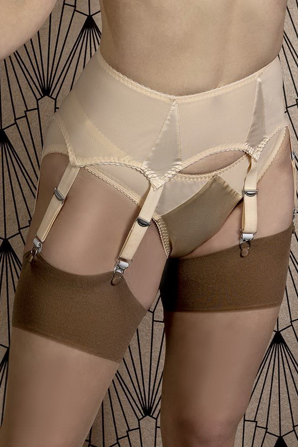 * Medium depth suspender belt in satin and powermesh to keep your nylons secure throughout the day