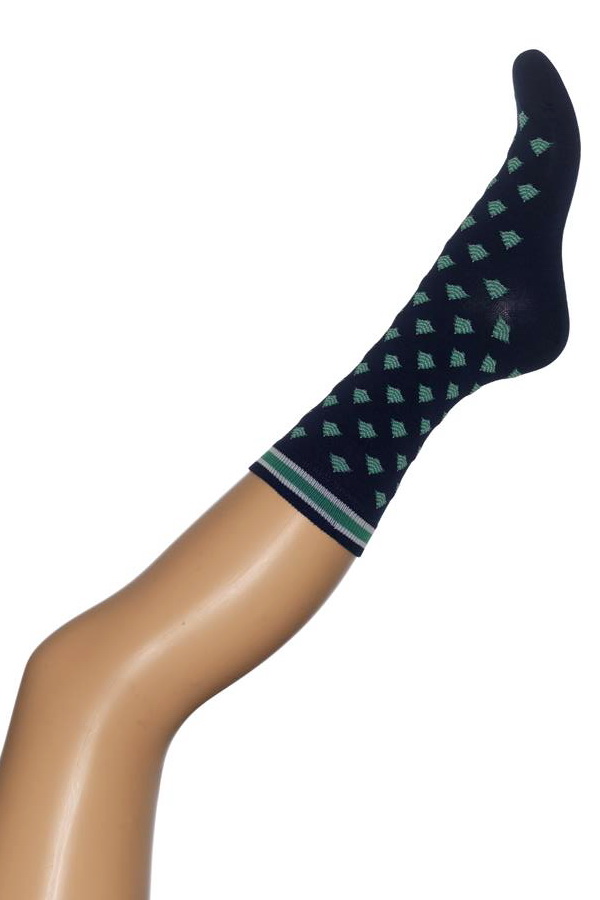 Vánoční dámské ponožky s drobným vzorkem stromečků.