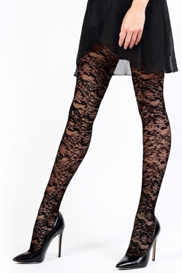 Romantické punčocháče se vzorem kytek je tvořen na tzv mikrosíťce.