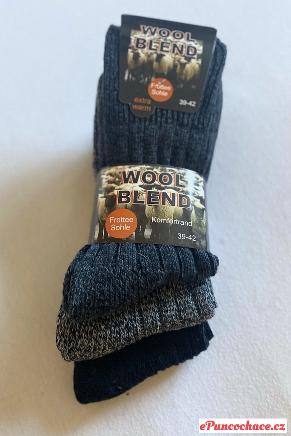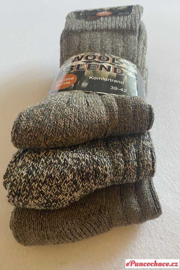 Sada tří párů pánských teplých ponožek. Zdravotní lem.