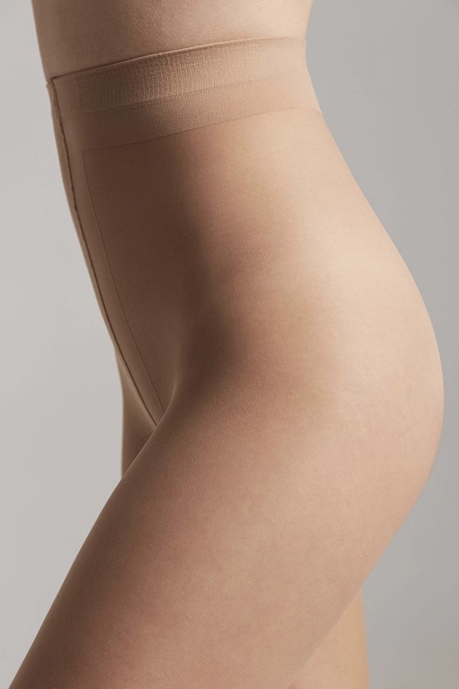 Jako druhá kůže. Půnčocháče v přirozeném přírodním tónu bez zesíleného sedu oceníte ke krátkým sukýnkám nebo vysokým rozparkům.