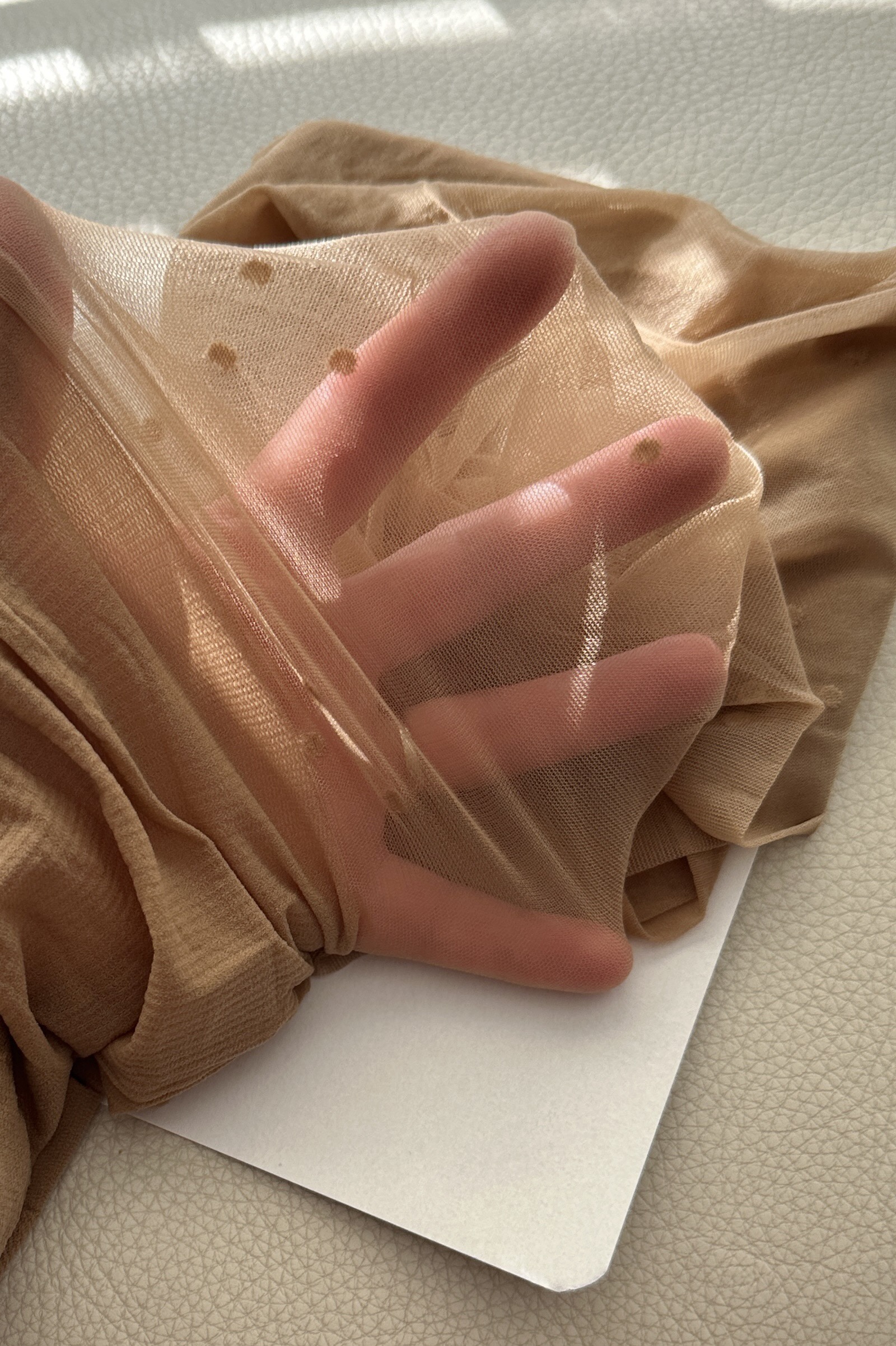 Vzorované punčocáče s celoplošným velmi jemným vzorem rozházených puntíčků.